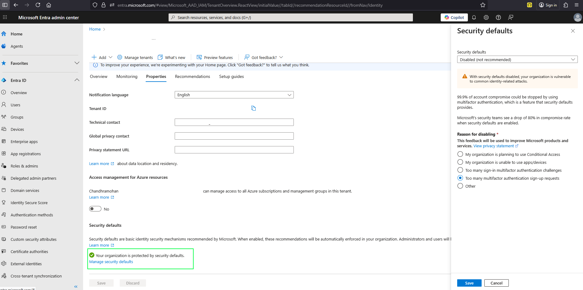 After this setting is enabled, all users in the organization will need to register for multi factor authentication. To avoid confusion, refer to the email you received and alternatively you can disable security defaults after it’s enabled.